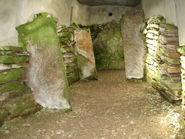 Facing West in the third of the western-most compartments. All of this area would have been rendered inaccessible by the larger heap of stacked stones behind. The gap in the wall on the far right is where one of the missing uprights would have stood. 1024x768.