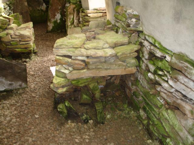 The larger heap of stacked stones, which was introduced at a later date and would have stretched across the chamber to seal off the three western compartments from the entrance, which is immediately on the other side of it in the top centre. The smaller stack is at the top left. 1024x768.