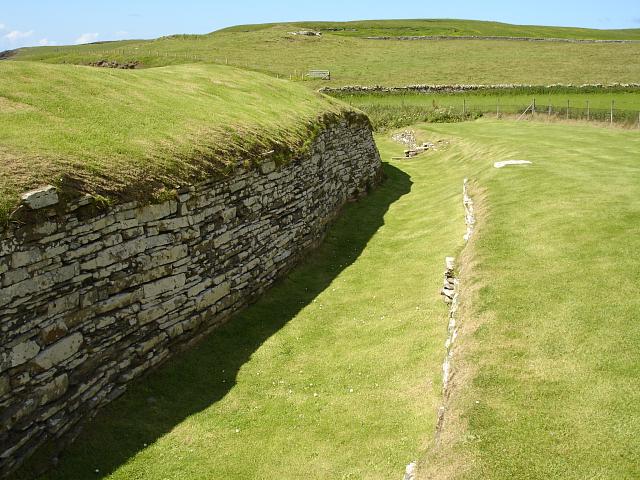 Looking North-West across the length of the outer ditch, with the wall on the left.