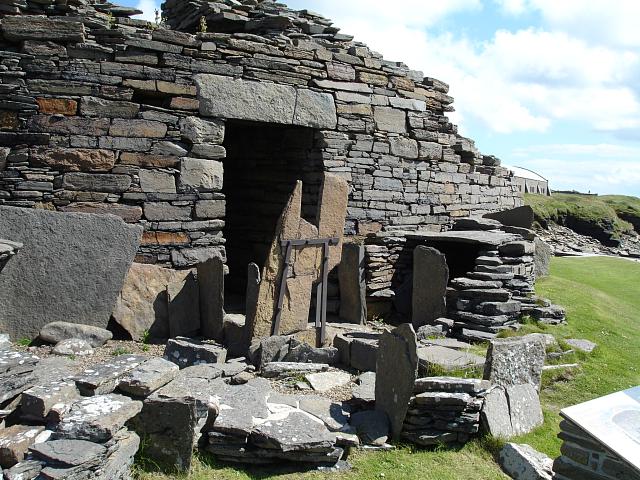 The entrance to the Broch. A part of the building containing Midhowe can be seen to the right. 1024x768.