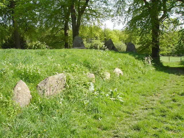Some of the stones that line the edge of the mound. Three of the four stones that surround the entrance can be seen over the top of the mound. 1024x768.