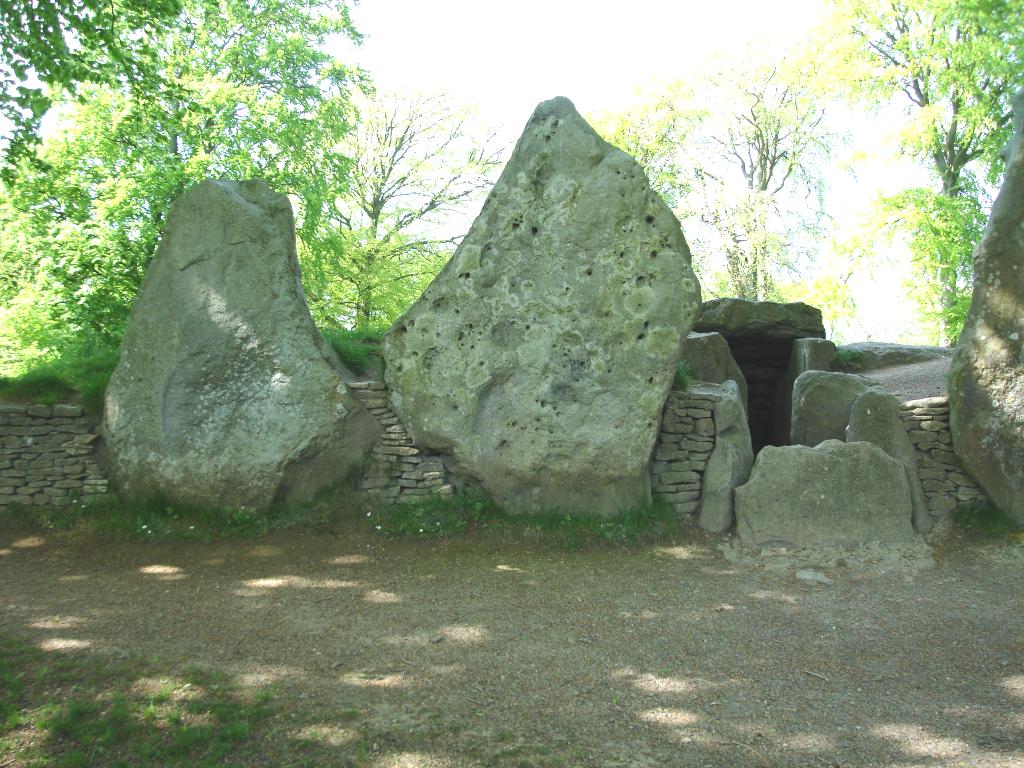 The two standing stones to the left of the entrance, which can be clearly seen towards the right. Originally a third sarsen stone stood in the extreme left, but this has been lost. 1024x768.
