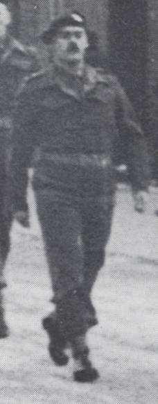 As a Lieutenant-Colonel, leading the Battalion in a march-past at Alford, Lincolnshire on the 21st January 1945. Copyright: Border Regiment Museum.