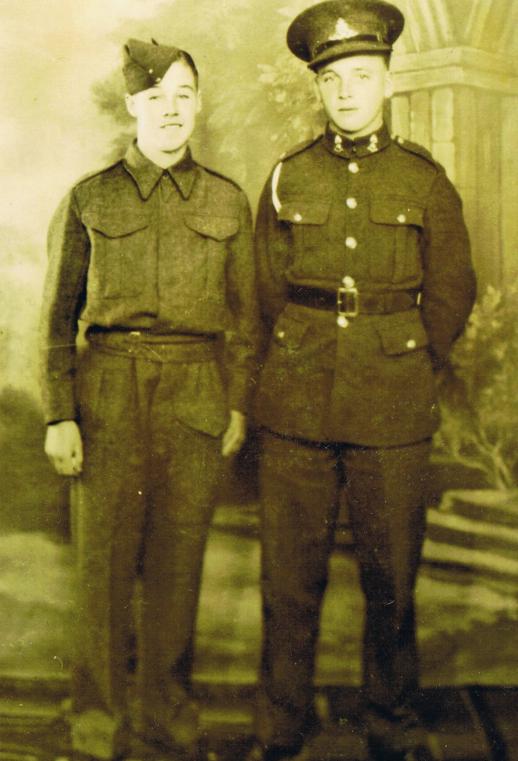 David McKenzie (right), taken earlier in the war when he was in the Royal Artillery. On the left is his friend, John Lindsay. Copyright: Ken McKenzie.