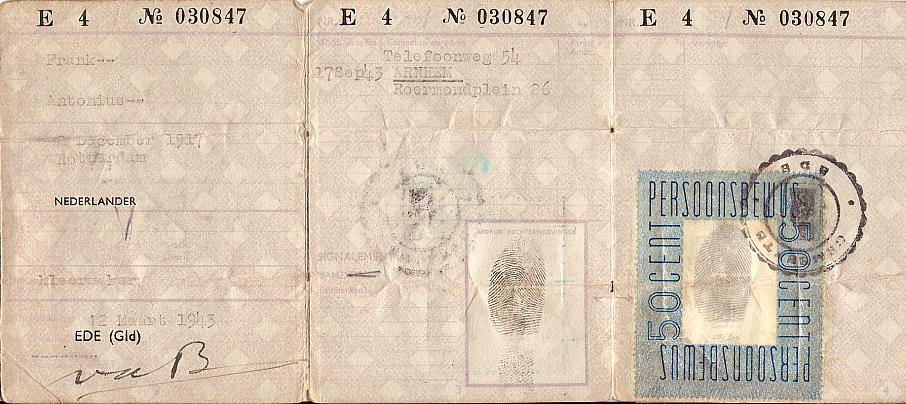 Tony Frank's forged identity card which he carried with him during his stay in Holland. Copyright: Simon Frank.