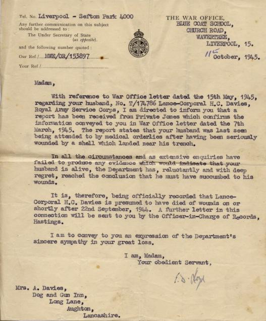 Lance-Corporal Henry Davies of the 250 Light Composite Company, who died of his wounds at Arnhem on the 22nd September 1944. Copyright: Howard Anderson.