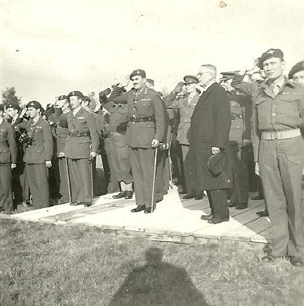 Major-General Urquhart (centre) at Oosterbeek, 1946.