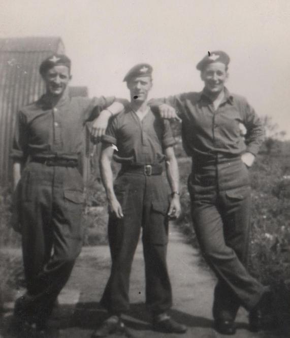 Ralph Baverstock (centre), possibly at Stoke Rochford before or after Arnhem, 1944. Copyright: Dave Baverstock.