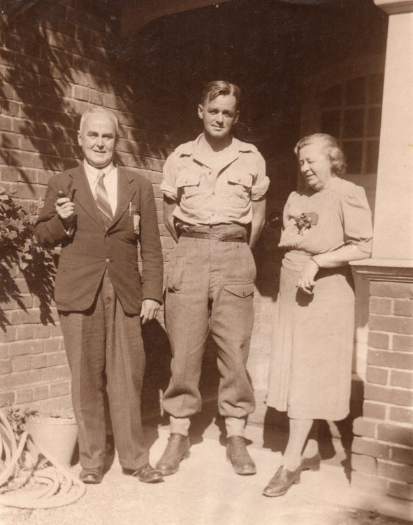 Lieutenant Pearson with his parents in 1944. Courtesy of Spencer Baldwin.