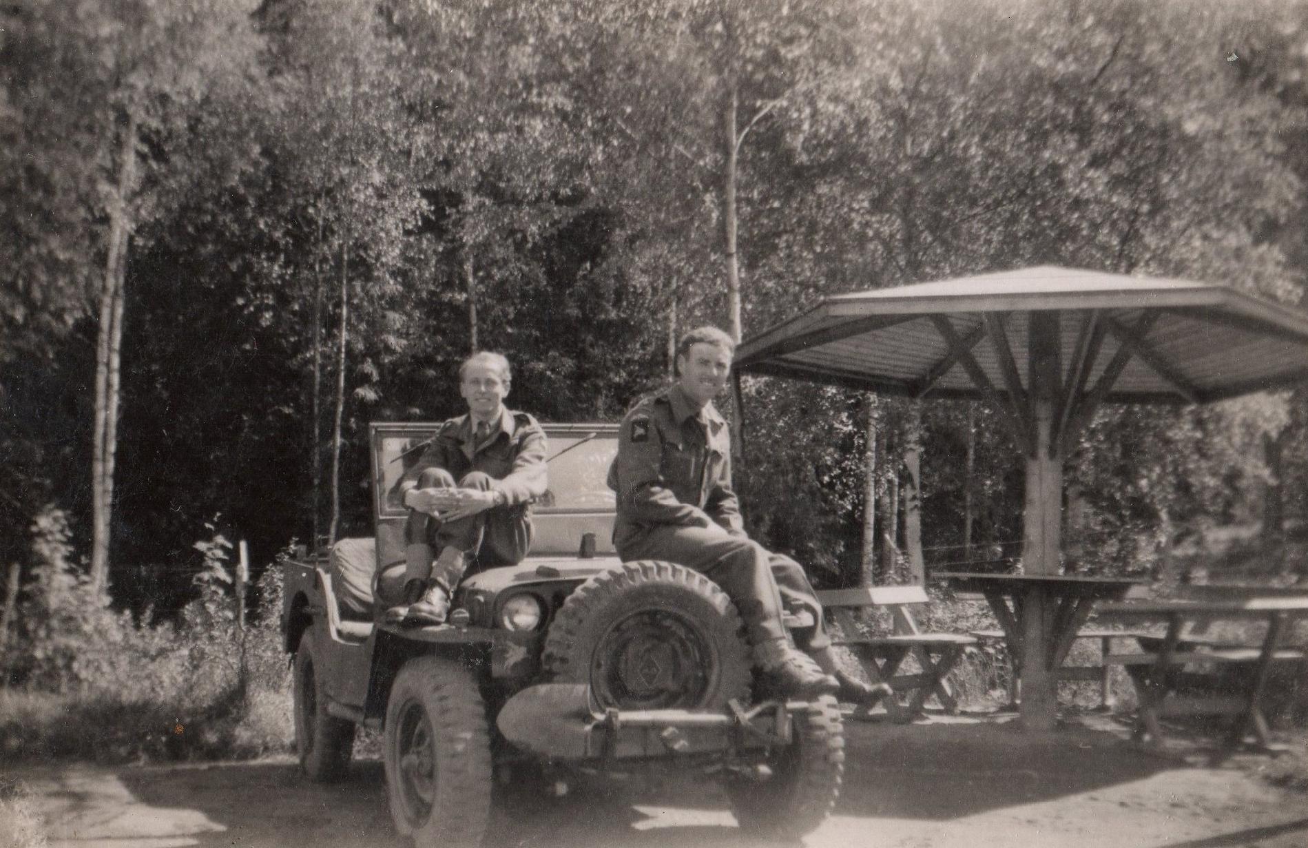 Captain Swinscow (left) with Lieutenant K. Watkins, Kongsvinger, Norway, June 1945. Larger image. Copyright: Owen Howell.