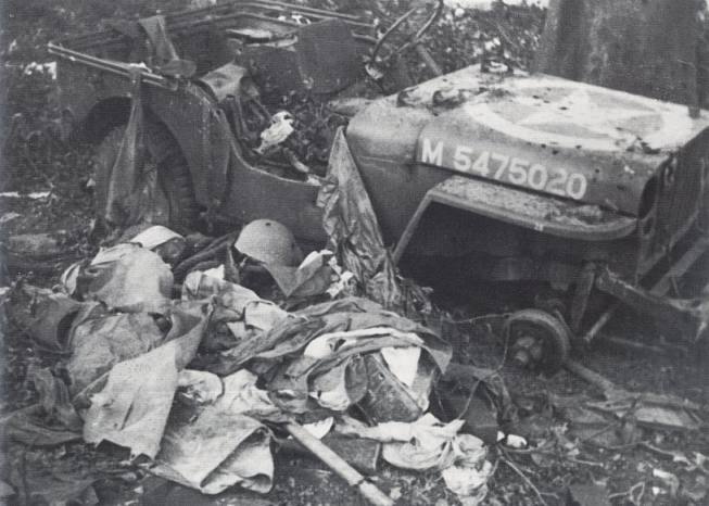 A Jeep and other equipment which had to be left behind, all rendered unserviceable by the British before the Division withdrew. Copyright: Airborne Museum, Oosterbeek.