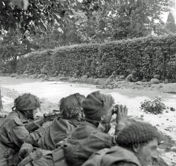 Men of the Nos.15 and 16 Platoons of "C" Company, the 1st Border, dug in on both sides of the Van Lennepweg, Wednesday 20th September. This area as it appears today can be seen here. Larger image. Copyright: IWM BU1103.