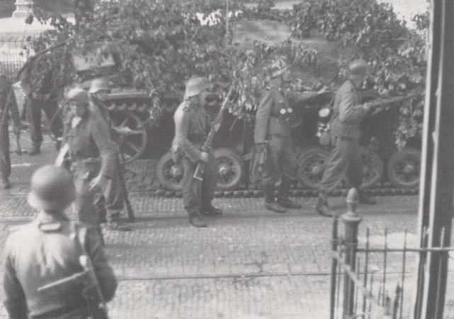 German infantry and a self-propelled gun near the 1st Parachute Brigade's positions around the Museum on Tuesday 19th September. Copyright: Bundesarchiv.