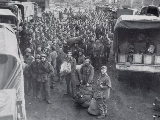 Men of the 1st Airborne re-equipping themselves at Nijmegen on the 26th September, after being reunited with the Seaborne Echelon. Copyright: Border Regimental Museum.