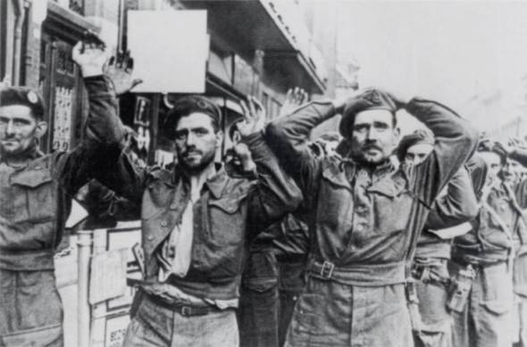 British prisoners on the Steenstraat, Arnhem, after being captured at the Bridge. Copyright: Bundesarchiv.
