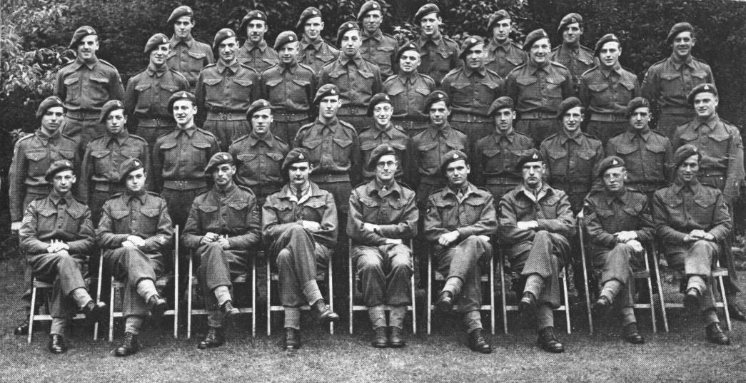 "A" Troop, 1st Airborne Reconnaissance Squadron, Ruskington, Lincolnshire, 17th July 1944. Lance-Sergeant Riches is missing from the photograph. Larger image.