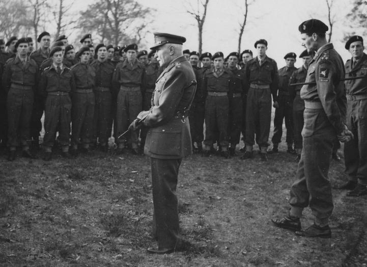 Field Marshal The Lord Milne accompanied by the Commander Royal Artillery of the 1st Airborne Division, Lieutenant-Colonel Robert Loder-Symonds (right foreground), at Coleby Hall, Lincolnshire, 21st November 1944. The photograph was taken by Mr Walter Lee; a professional photographer from Grantham, and also an ARP Warden. Larger image. Copyright: Brian O'Grady.