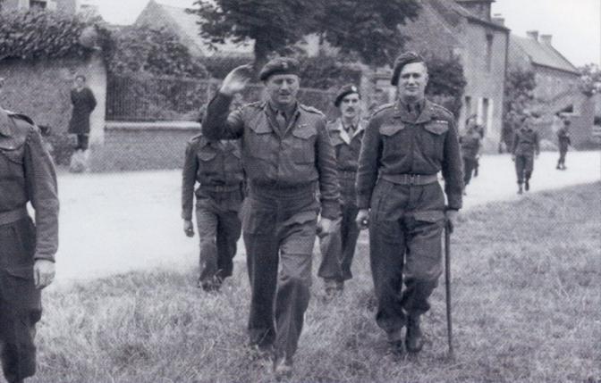 Lieutenant-Colonel Mills-Roberts (left) with Brigadier John Durnford-Slater, Deputy Commander Commando Group, in Le Plein on the 14th July. Copyright: Imperial War Museum.