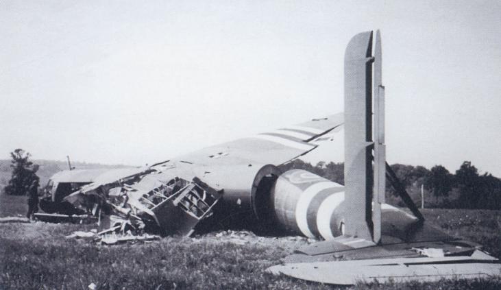 A wrecked Horsa, which landed away from the landing zones, is examined by a German soldier. Copyright: Heimdal Collection.