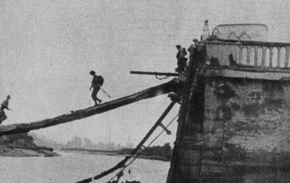 Belgian troops crossing the River Dives at Cabourg on the 21st August 1944.
