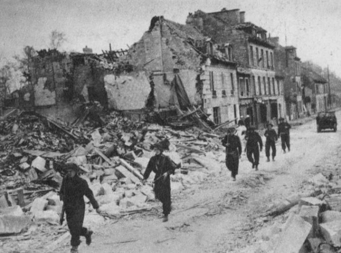 The 1st Belgian Brigade passes through Houlgate, on the eastern bank of the River Dives.