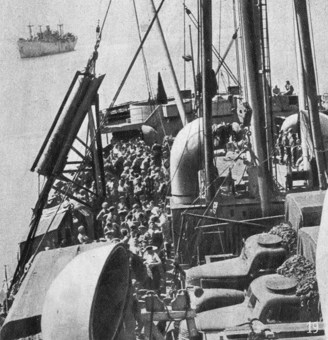Soldiers of the 1st Belgian Brigade en route to the Mulberry Harbour at Arromanches.