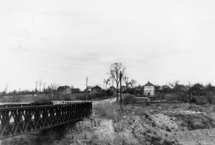 Troarn Bridge, 1949, repaired with a Bailey Bridge.