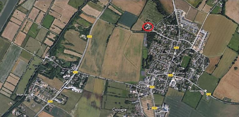 The 4 Commando graveyard at Hauger is located in the vegetable garden located at the North Eastern edge of the large manor house in the area adjacent to the beginning of the large orchard that can be seen as the series of regular green dots contained within the large field North of the manor house.