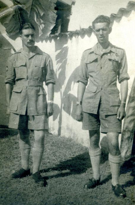 CSM Dent (right) with Captain Dennis Rendell in the Far East, 1945.