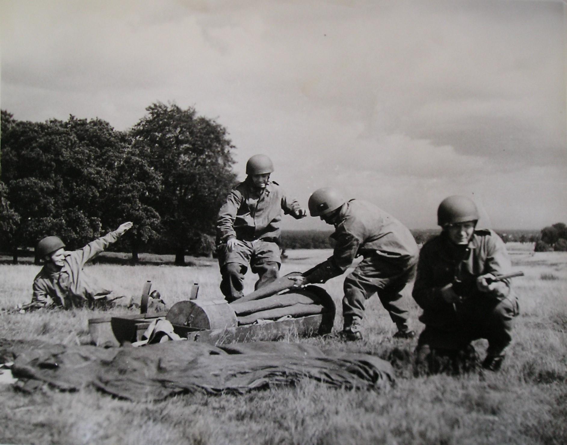 Paratroopers collecting their weapons from containers, early 1942. Larger image. Copyright: IWM H22821.