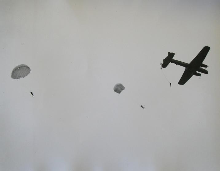 Jumping from a Whitley at Tatton Park, 1941-42.