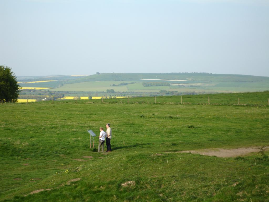 Taken near the eastern entrance, looking east towards Liddington Castle, immediately to the right of the single tree in the centre-left of the horizon. Click here to see Barbury Castle from Liddington. 1024x768.