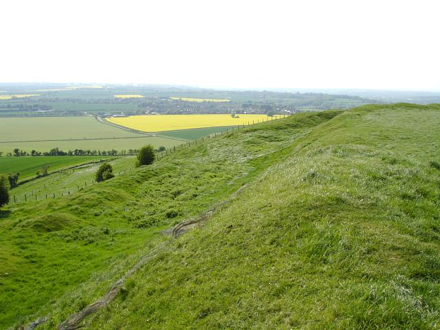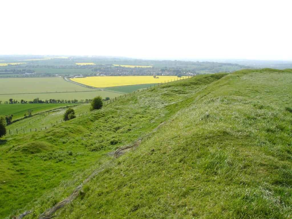 Looking west from the top of the south-western rampart. Note the steep gradient leading up to the rampart on the left. 1024x768.