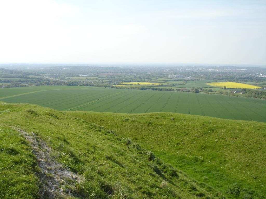 Facing north-west at the north-eastern corner of the fort. The field beyond the rampart gives a good impression of the steep gradient to the fort from this direction. 1024x768.