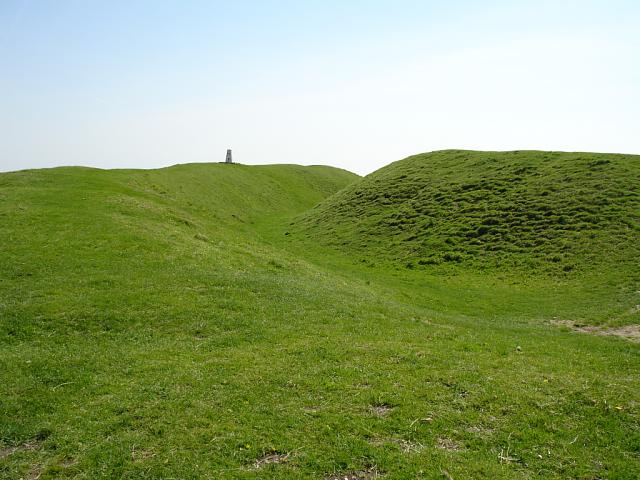 Taken outside the north-eastern corner of the fort, looking south-east across the ramparts to the summit stone. The interior of the fort is to the right. 1024x768.