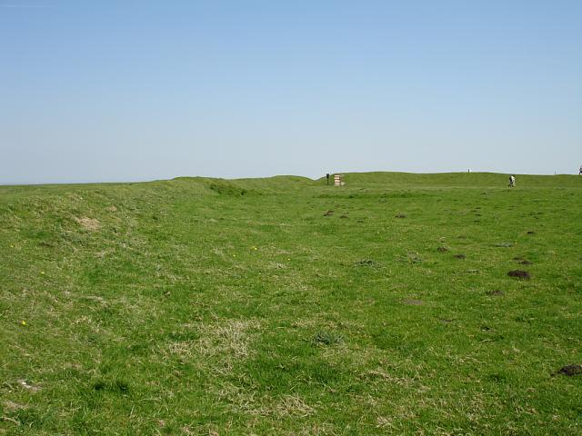 Standing in the fort interior, looking east across the north-eastern rampart.