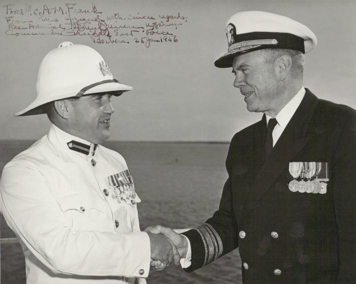 Tony Frank (left) with Rear Admiral John Quinn of the US Navy, Berbera, 1956. Copyright: Simon Frank.