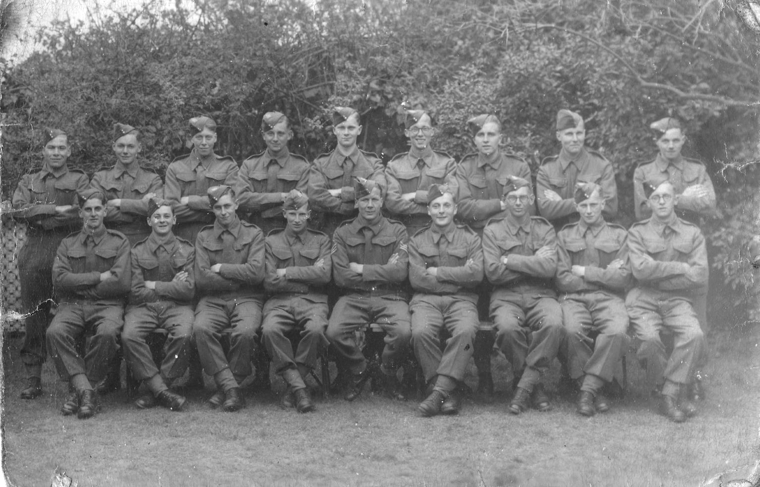 Luis DiMarco (front row, fourth from the right) with the Royal Corps of Signals, Chichester, May 1942. Larger image. Copyright: Luis DiMarco.