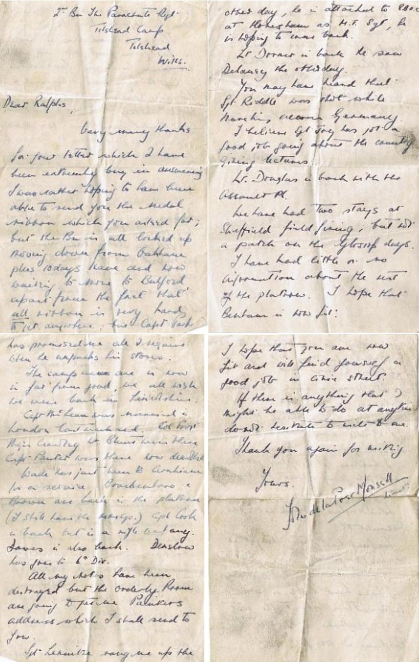 A letter from Lieutenant Monsell, Commander of the 2nd Battalion's Medium Machine Gun Platoon, to Private Ralphs.