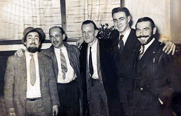 Taken at Skegness during the 1950's. Left to right: Leslie "Jock" Grier, unknown, Cyril Ironmonger, Ted Dennis, and Walter Ironmonger. Copyright: William Lawrence