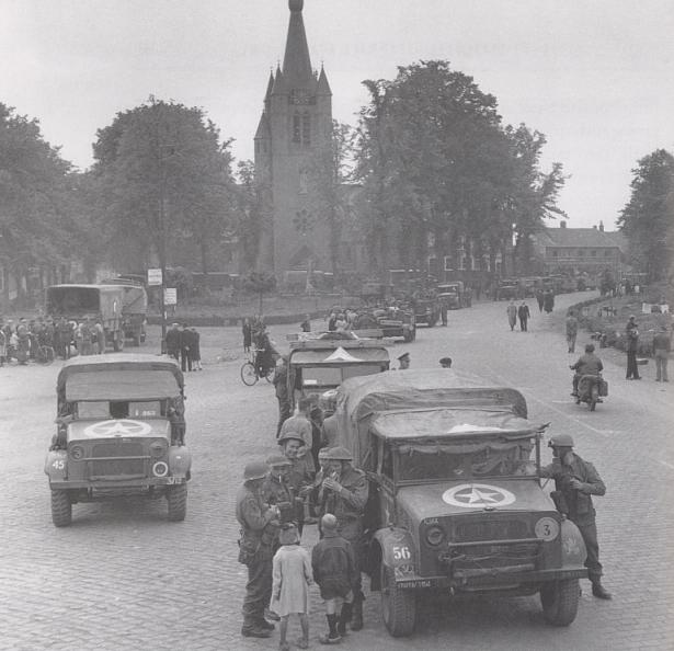 British vehicles in Valkenswaard on the 21st September. Copyright: IWM B.10148.