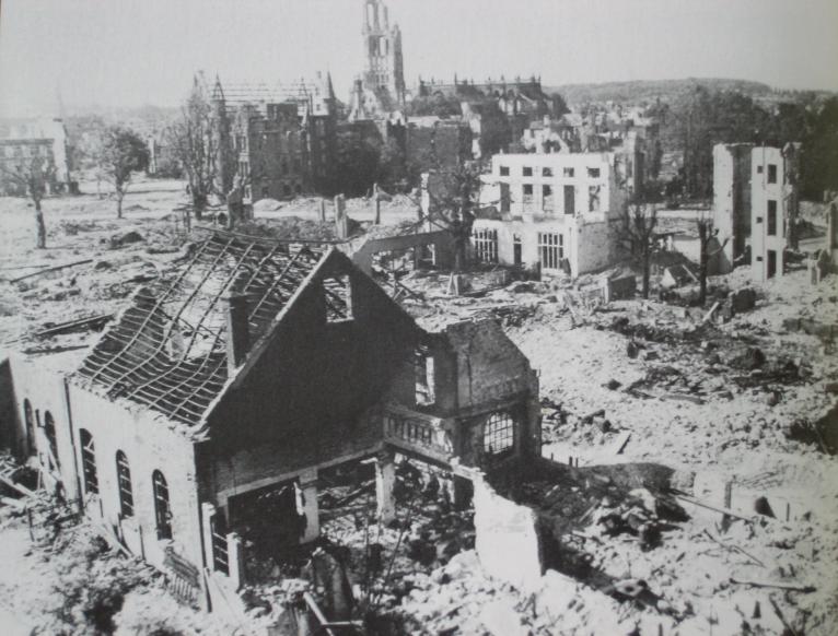 The skeletal remnants of buildings on the western side of Arnhem Bridge.