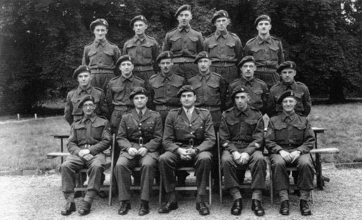 Front row: Sergeant A. L. Spencer, Major J. E. Miller, Colonel Graeme Warrack, Quartermaster Sergeant H. W. Evans and Staff-Sergeant M. Woolford.