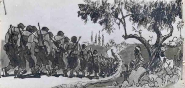 The famous "Suicide March" March from Casablanca Harbor to Camp Don B. Passage.