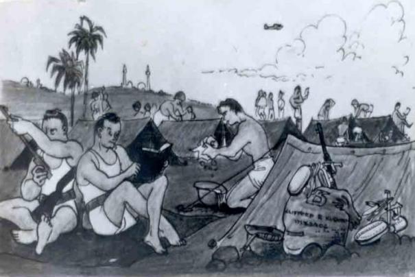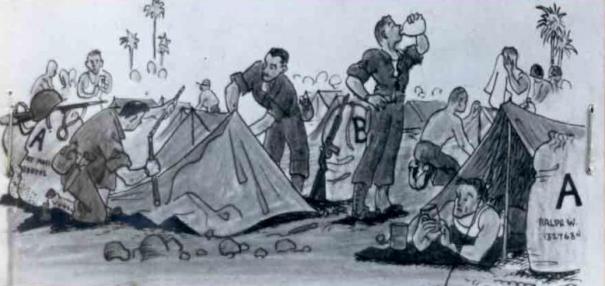 Pitching up tents at first overseas camp.