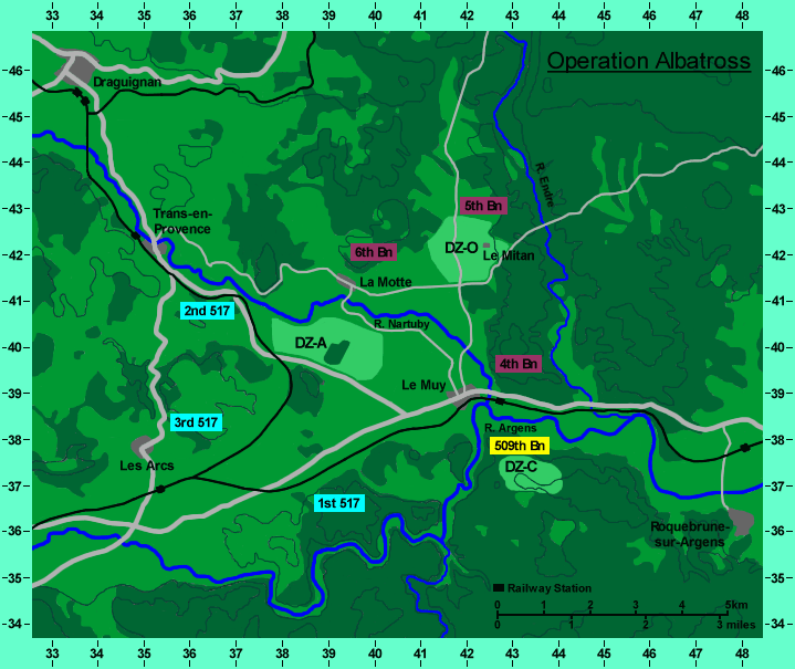 The planned positions of the 1st Airborne Task Force after Operation Albatross. The grid references around the edge correspond to the coordinates used in the War Diaries section.