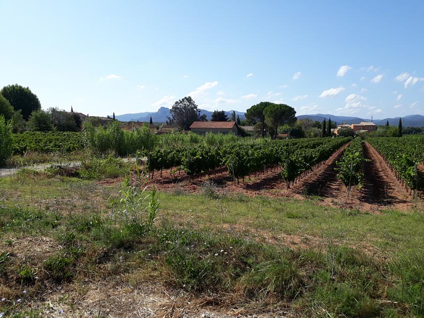 The view South-East across DZ-O from the northern end of Le Mitan. Larger image. Copyright: Bob Hilton, August 2019.