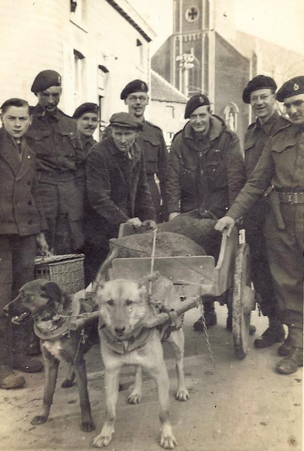 Hammond (second from the left) in Burst, Belgium, March 1945. Copyright: Nigel Hammond.