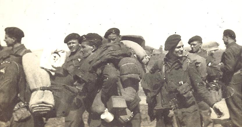 Private Bernard Hammond (centre, face half visible at the back) at Luneburg Airfield, Germany, May 1945, shortly before emplaning for the UK. Copyright: Nigel Hammond.
