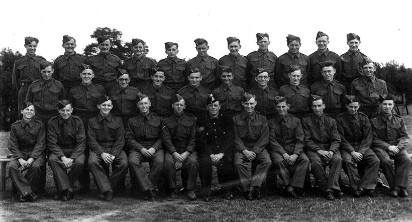 Dennis Russon of the 8th Parachute Battalion (back row, third from the left) whilst serving with an unknown unit. He was killed on the 6th June 1944, and is buried in Herouvillette. Copyright: Margaret Coyne.